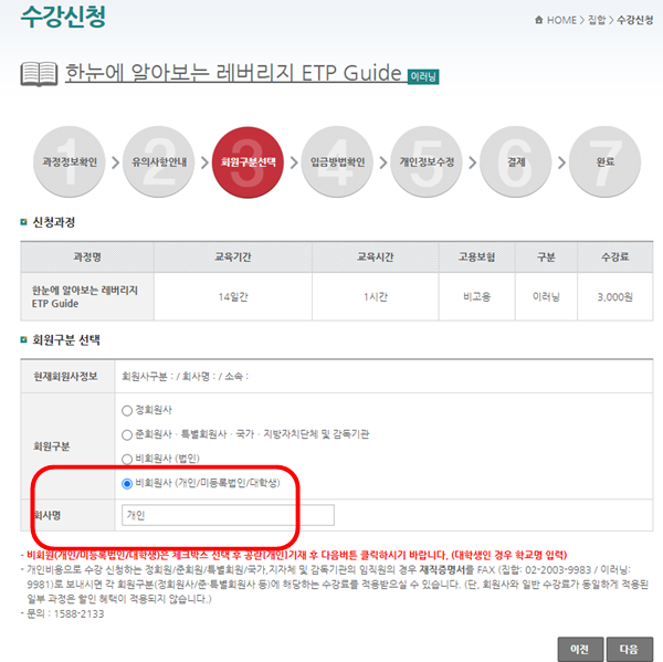 다음 회원구분선택에는 그냥 비회원사(개인) 회사명:개인 적어주면 간단하게 다음페이지로 넘어갈수 있다.