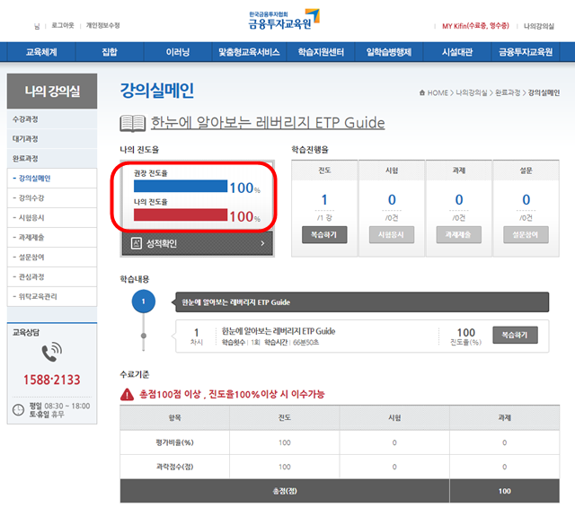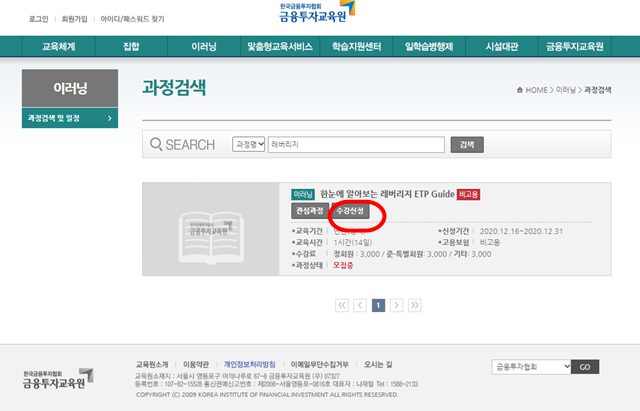 - 금융투자교육원 홈페이지(http://www.kifin.or.kr)에서 “한눈에 알아보는 레버리지 ETP Guide” 과정 신청