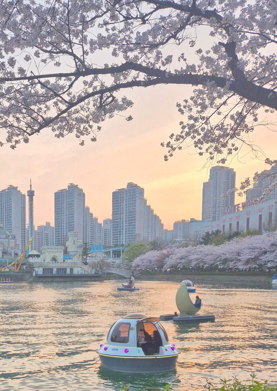 석촌호수는 동호와 서호로 나뉘며, 왕벚나무 약 1,000여 그루가 호수를 따라 늘어서 있어, 산책만으로도 힐링이 됩니다. 날씨가 맑은 날에는 벚꽃이 호수에 비치는 모습이 인생샷 포인트로 인기를 끌죠.