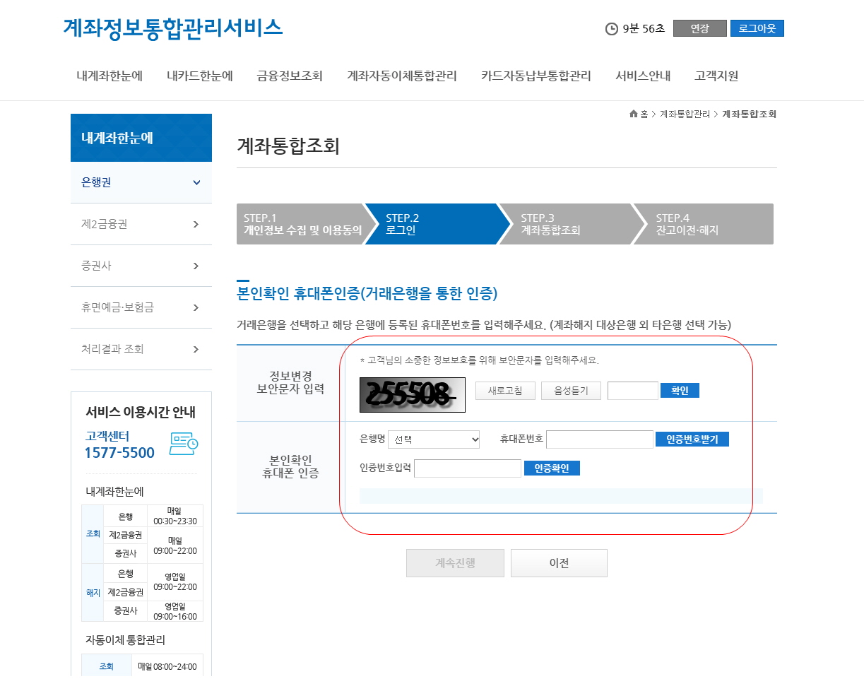 보안문자+휴대폰 인증번호 입력하면 드디어 조회가 가능해집니다.