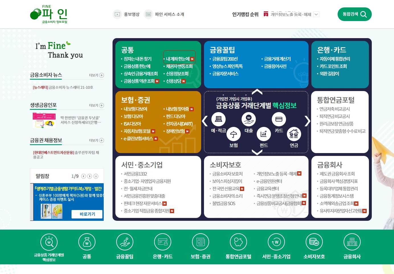 2. 파인 사이트 연동되어요, 공통-> 내계좌한눈에를 눌러주세요.