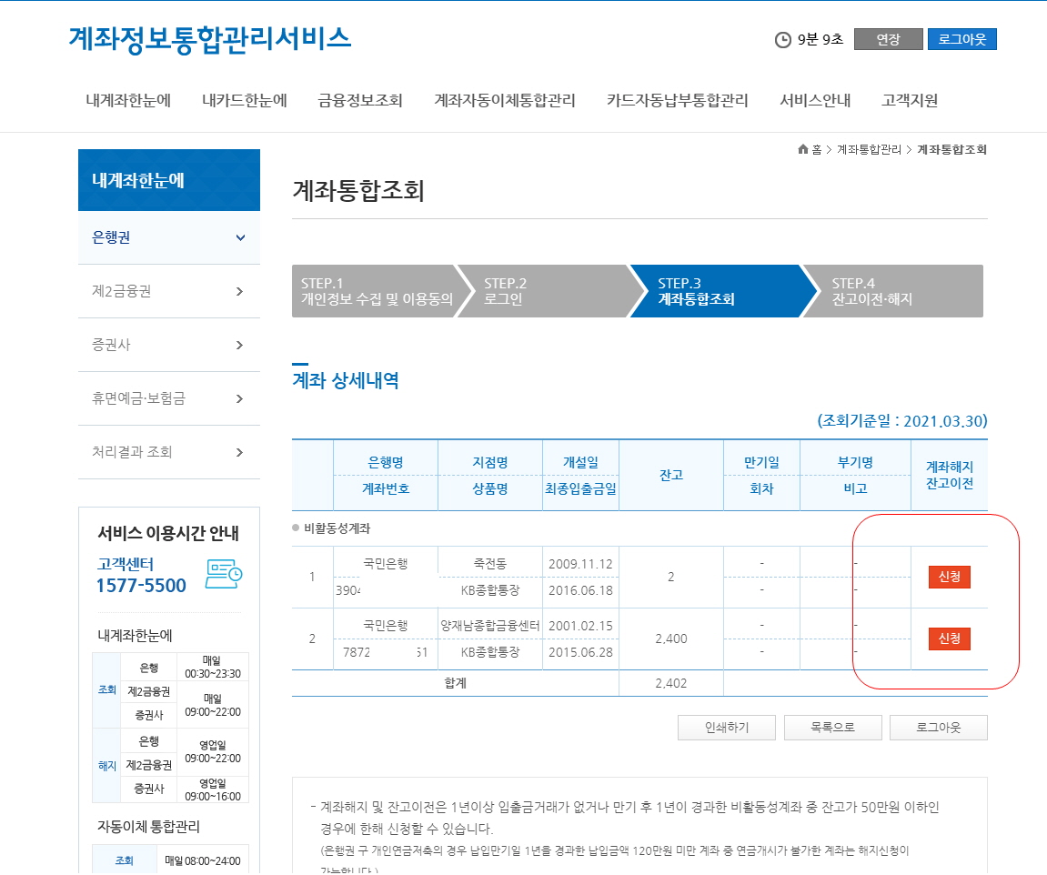 증권사와 제2금융권도 동일한 방법으로 조회해서 안쓰는 통장의 짜투리 금액 모아 행복해 집시다 ㅋㅋ